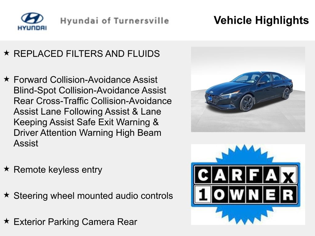2023 Hyundai Elantra SEL Certified. CARFAX One-Owner. 30/40 City/Highway MPG
