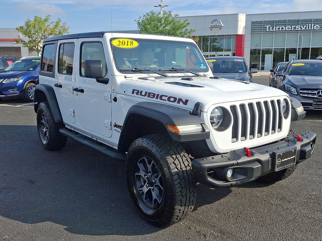 - ***Are you READY for a ?! Call ASAP! Not Sure about which vehicle to buy? Well look no further than this CERTIFIED SELECT 2018 JEEP WRANGLER UNLIMITED RUBICON 4WD ***WITH ONLY 84893 MILES ***One of the best things about this car is something you can't see but you'll be thankful for it every time you pull up to the pump. Fuel efficiency is where it's at now and this Nissan's got it. Only Nissans that meet Nissan Of Turnersville highest standards qualify for the Certified Pre-Owned status. This vehicle has a clean non-branded title and most important passed a 84-point quality assurance inspection. Benefits of buying a CERTIFIED SELECT Pre-Owned Nissan include an 6-months/6000-mile limited POWERTRAIN warranty vehicle title history report vehicle title insurance policy 24-hour roadside assistance trip-interruption coverage 84-point inspection Genuine Nissan parts factory-trained technicians plus an optional Security Plus Pre-Owned WRAP Service Contract***. Nissan Of Turnersville does offer various Nissan certification options at different prices based on the coverage requested by the customer. Contact Internet Sales TEAM at 856-516-6335 to schedule your VIP Experience*** Internet price reflects $500 Nissan of Turnersville College Grad and all Financing Rebates/Incentives up to $500. DOES NOT INCLUDE DEALER INSTALLED OPTIONS.