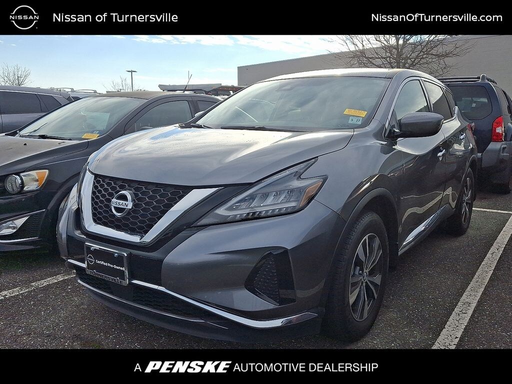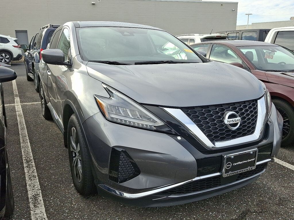 - ***Are you READY for a Nissan?! Call ASAP! Not Sure about which vehicle to buy? Well look no further than this CERTIFIED 2022 NISSAN MURANO S AWD ***WITH ONLY 45635 MILES ***One of the best things about this car is something you can't see but you'll be thankful for it every time you pull up to the pump. Fuel efficiency is where it's at now and this Nissan's got it. Only Nissans that meet Nissan Of Turnersville highest standards qualify for the certified Pre-Owned status. This vehicle has a clean non-branded title and most important passed a 167-point quality assurance inspection. Benefits of buying a certified Pre-Owned Nissan include an 84-month/100000-mile limited warranty vehicle title history report vehicle title insurance policy 24-hour roadside assistance trip-interruption coverage 167-point inspection Genuine Nissan parts factory-trained technicians plus an optional Security Plus Pre-Owned WRAP Service Contract***. Nissan Of Turnersville does offer various Nissan certification options at different prices based on the coverage requested by the customer. Contact Internet Sales TEAM at 856-516-6335 to schedule your VIP Experience*** Internet price reflects $750 Financing Rebates/Incentives. DOES NOT INCLUDE DEALER INSTALLED OPTIONS.