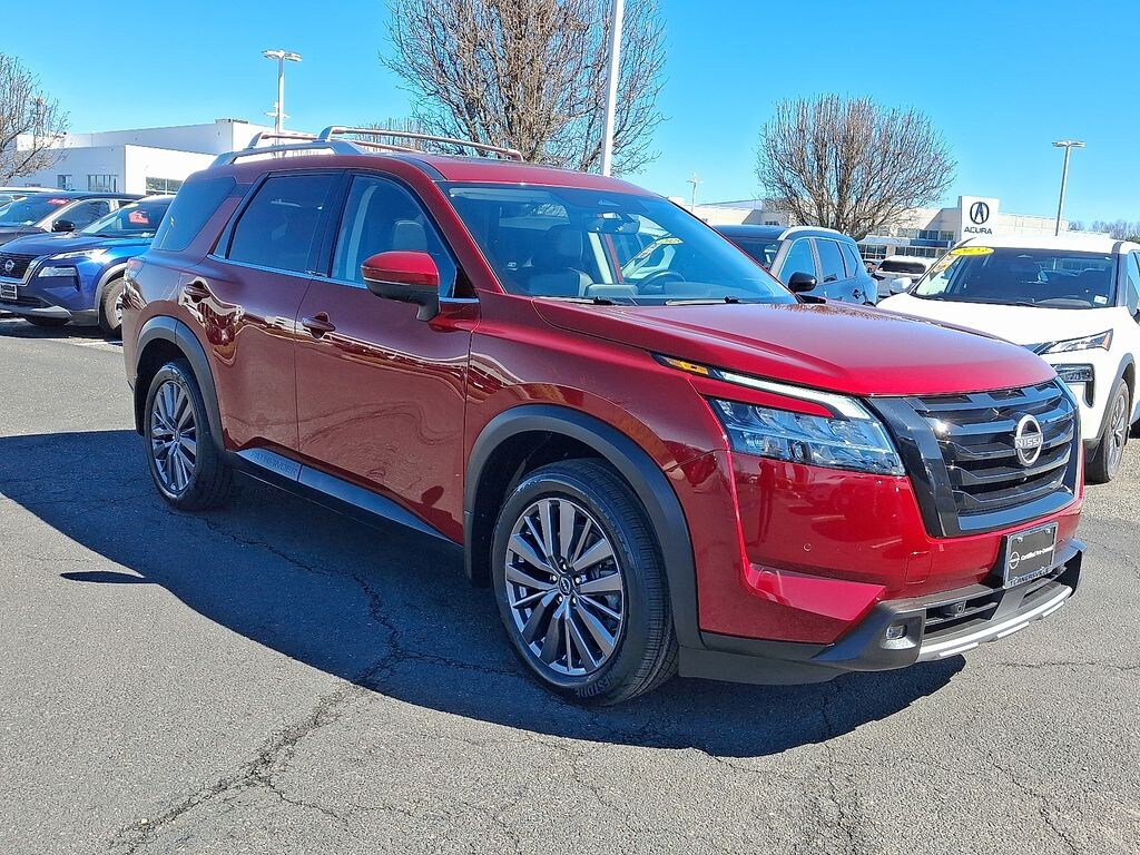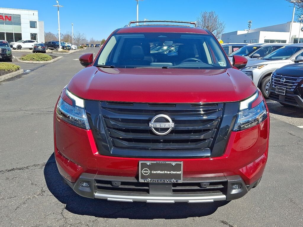 ***BALANCE OF FACTORY WARRANTY***, SERVICE RECORDS AVAILABLE, BLUE TOOTH HANDS FREE, SIRIUS XM, RECENT TURNERSVILLE TRADE IN, **NOT A RENTAL**, REAR BACK UP CAMERA, FRESH OIL CHANGE, RECENTLY DETAILED, PASSED DEALER INSPECTION, ***Are you READY for a Nissan?! Call ASAP! Not Sure about which vehicle to buy? Well look no further than this CERTIFIED 2023 NISSAN PATHFINDER SL PREMIUM 4WD ***WITH ONLY 20,350 MILES ***One of the best things about this car is something you can't see, but you'll be thankful for it every time you pull up to the pump. Fuel efficiency is where it's at now, and this Nissan's got it. Only Nissans that meet Nissan Of Turnersville highest standards qualify for the certified Pre-Owned status. This vehicle has a clean, non-branded title, and most important, passed a 167-point quality assurance inspection. Benefits of buying a certified Pre-Owned Nissan include an 84-month/100,000-mile limited warranty, vehicle title history report, vehicle title insurance policy, 24-hour roadside assistance, trip-interruption coverage, 167-point inspection, Genuine Nissan parts, factory-trained technicians, plus an optional Security Plus Pre-Owned WRAP Service Contract***. Nissan Of Turnersville does offer various Nissan certification options at different prices based on the coverage requested by the customer. Contact Internet Sales TEAM at 856-516-6335 to schedule your VIP Experience*** Internet price reflects $750 Financing Rebates/Incentives. DOES NOT INCLUDE DEALER INSTALLED OPTIONS., Pathfinder SL PREMIUM, 4D Sport Utility, V6, 9-Speed Automatic, 4WD, Scarlet Ember Tintcoat, Charcoal Leather, 20" Painted Alloy Wheels, 2nd-Row Captain Chairs, 2nd-Row Removable Center Console, Black Appearance Package, Black Grille (K10), Black Liftgate Emblems, Bose Premium Audio System, Cargo Area Protector, Cargo Net, Cargo Package, First Aid Kit, Heated Rear Seats, Illuminated Kick Plate, Lighting Package (N92), Navigation system: NissanConnect Navigation, Panoramic Moonroof, Pathfinder Wordmark, SL Premium Package, Tow Hitch Receiver & Harness, Welcome Lighting.