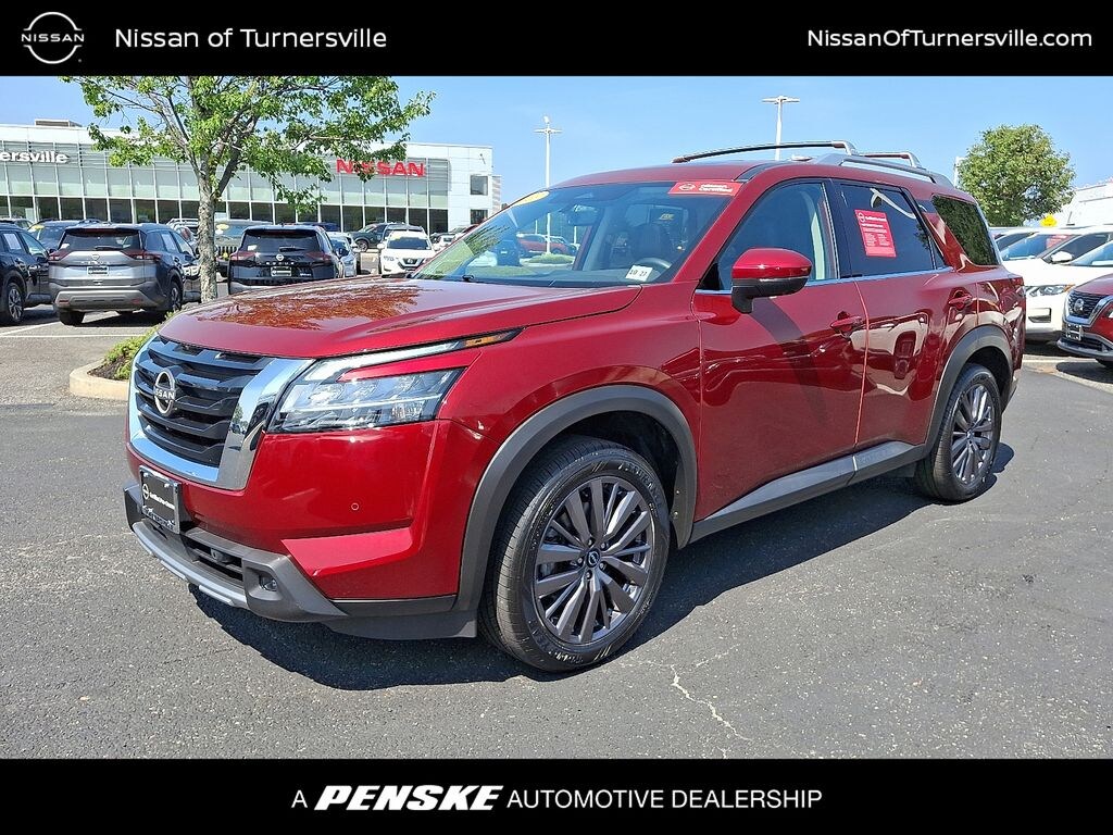 ***BALANCE OF FACTORY WARRANTY***, SERVICE RECORDS AVAILABLE, BLUE TOOTH HANDS FREE, SIRIUS XM, **NOT A RENTAL**, REAR BACK UP CAMERA, FRESH OIL CHANGE, RECENTLY DETAILED, PASSED DEALER INSPECTION, ***Are you READY for a Nissan?! Call ASAP! Not Sure about which vehicle to buy? Well look no further than this CERTIFIED 2023 NISSAN PATHFINDER SL 4WD ***WITH ONLY 25,668 MILES ***One of the best things about this car is something you can't see, but you'll be thankful for it every time you pull up to the pump. Fuel efficiency is where it's at now, and this Nissan's got it. Only Nissans that meet Nissan Of Turnersville highest standards qualify for the certified Pre-Owned status. This vehicle has a clean, non-branded title, and most important, passed a 167-point quality assurance inspection. Benefits of buying a certified Pre-Owned Nissan include an 84-month/100,000-mile limited warranty, vehicle title history report, vehicle title insurance policy, 24-hour roadside assistance, trip-interruption coverage, 167-point inspection, Genuine Nissan parts, factory-trained technicians, plus an optional Security Plus Pre-Owned WRAP Service Contract***. Nissan Of Turnersville does offer various Nissan certification options at different prices based on the coverage requested by the customer. Contact Internet Sales TEAM at 856-516-6335 to schedule your VIP Experience*** Internet price reflects $750 Financing Rebates/Incentives. DOES NOT INCLUDE DEALER INSTALLED OPTIONS., Pathfinder SL, 4D Sport Utility, V6, 9-Speed Automatic, 4WD, Scarlet Ember Tintcoat, Charcoal Leather, 20" Painted Alloy Wheels, 2nd-Row Captain Chairs, 2nd-Row Removable Center Console, Bose Premium Audio System, Heated Rear Seats, Navigation system: NissanConnect Navigation, Panoramic Moonroof, SL Premium Package, Tow Hitch Receiver & Harness.