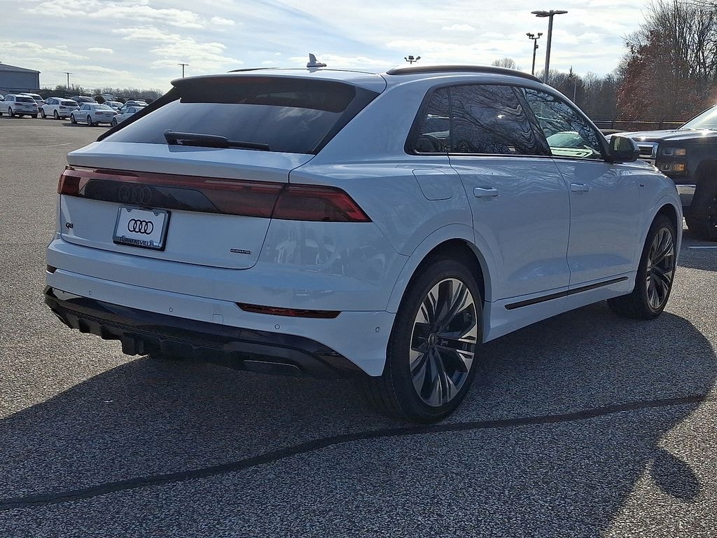 2026 Audi Q8 Premium Plus PREMIUM PLUS PKG, 4-Way Power Lumbar For Passenger Seat, 4-Zone Automatic Climate Control, ABS brakes, Active Cruise Control, Adaptive Air Suspension, Anthracite Gray Audi Rings, Audi Cargo Box, Bang & Olufsen Premium Sound System with 3D Sound, Black Exterior Trim, Compass, Control Buttons in Gloss Black with Haptic Feedback, Dark Chrome Exhaust Tips, Dual-Pane Acoustic Glass For Side Windows, Electronic Stability Control, Exterior Parking Camera Rear, Front dual zone A/C, Front Seats with Ventilation, Heated door mirrors, Heated Front Bucket Seats, Heated front seats, Heated Rear Seats, Heated Steering Wheel, Illuminated Door Sills, Illuminated entry, Illuminated S Line Door Sills, LED Interior Lighting Plus Package, Low tire pressure warning, Navigation System, Power Liftgate, Power moonroof: Panoramic, Power Rear Side Windows with Manual Tailgate Sunshades, Power Soft-Closing Doors, Premium Plus Package, Remote keyless entry, S Line Black Optic Package, S Line Exterior, Top View Camera System with Virtual 360 View, Traction control, Wheels: 22" 5-Double-Arm Design with Bicolor Finish.
